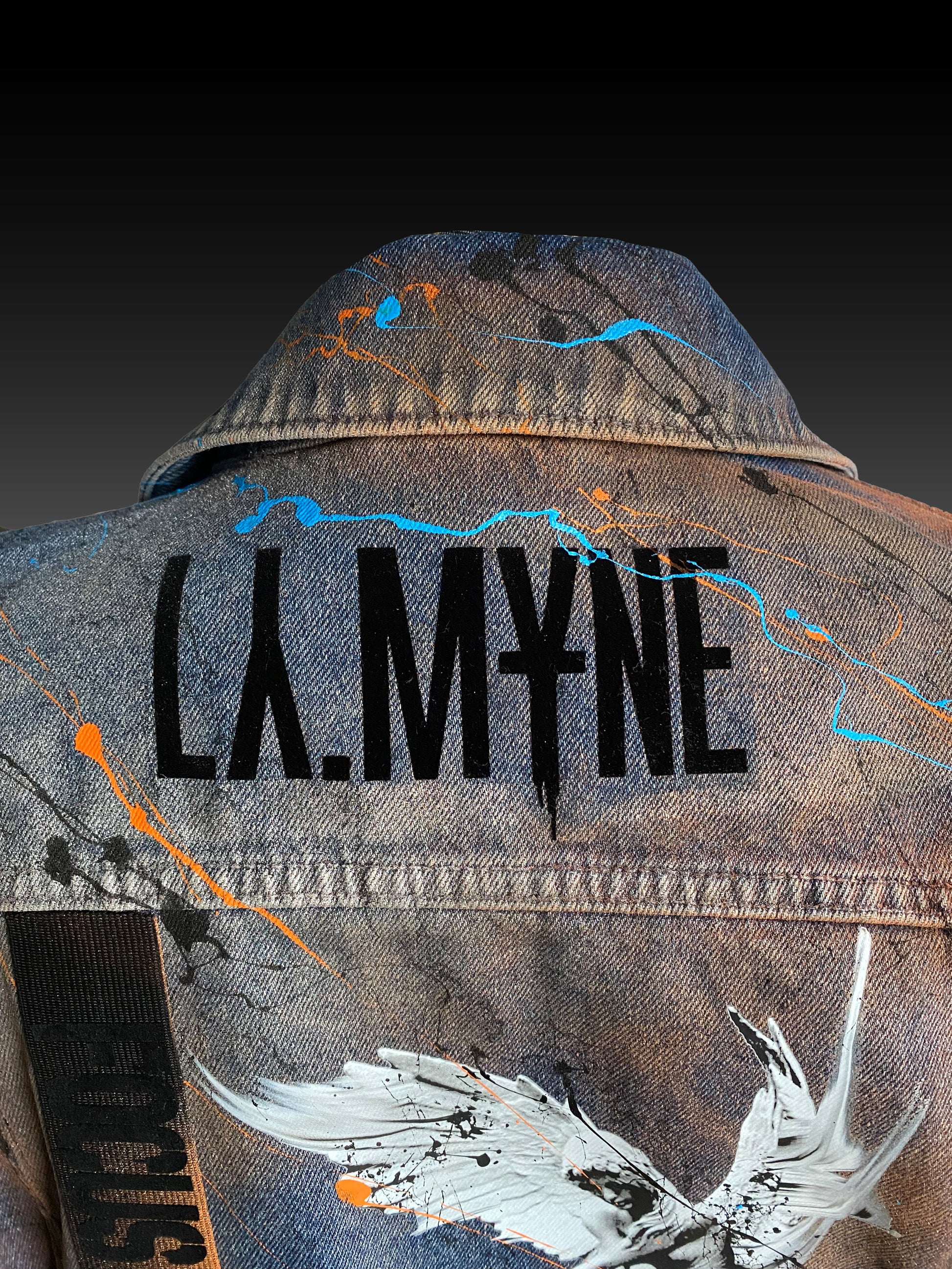 Die kurz geschnittene Jacke entspricht einer Größe S. Wie jedes unserer Unikate wird auch diese Jacke kein zweites Mal angefertigt. Du möchtest dein Kleidungsstück noch zusätzlich personalisiert haben? Kein Problem! Schreib uns einfach eine Nachricht an info@lamyne.com