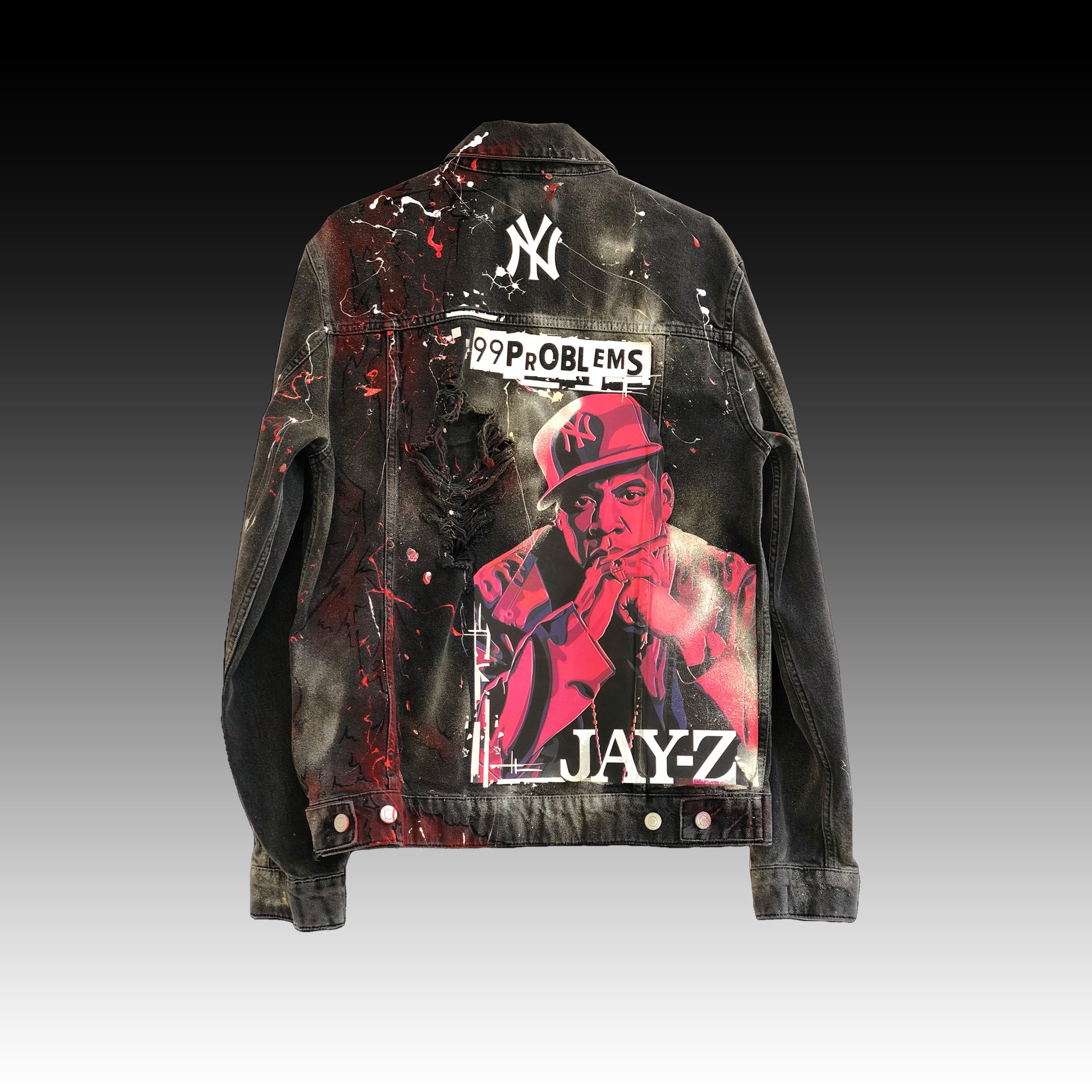 Diese fetzige Jeans Jacke sticht mit einem besonders coolen Jay-Z Design hervor. Sei der Hingucker - egal wohin du gehst!
